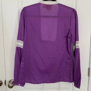 Tory Burch Cotton Purple Boho Marissa Poplin Peasant Tunic Blouse Top Embroidered Size 8