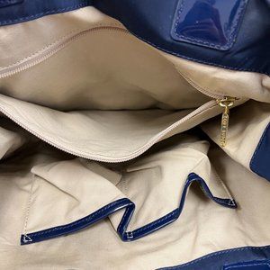 Navy blue nylon with patent detail