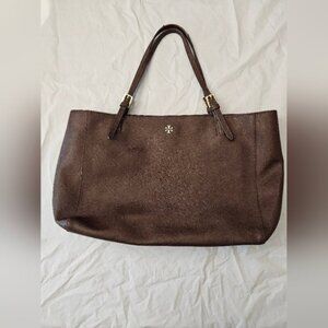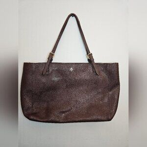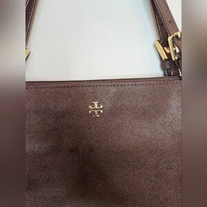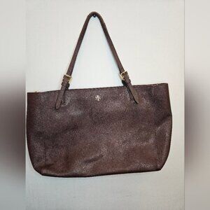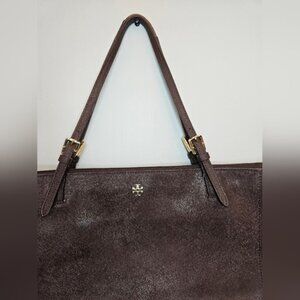 Tory Burch Emerson Large Burgundy Buckle Leather Tote Bag