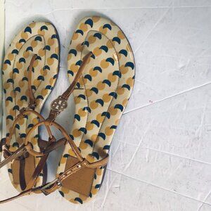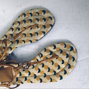 Tory Burch Emmy Thong T Strap Sandals Flats Slides, size 5- 5.5 US (rubbed off on shoes - see measurements).