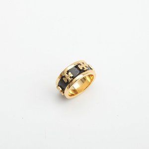Tory Burch Enamel Raised Logo Ring Black/Gold