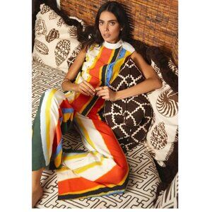 Soft woven pants cut with a slimming high waist and dramatically billowed legs are elevated to statement status with painterly stripes in a showstopping palette.