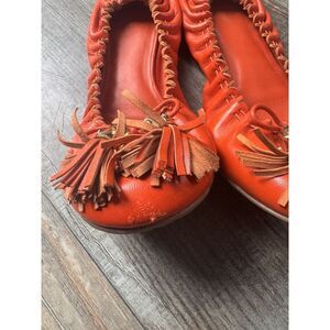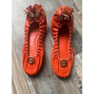 Tory Burch Flats Women's Size 7.5M Reese Tassel Scrunch Ballet Orange Leather