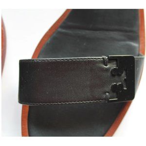 Tory Burch Gabrielle Sandal with Ankle Strap / Size 7.5 / Black Logo Leather