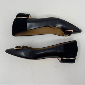 Tory Burch Gigi Black Pointy Toe Flat Leather Silk Suede T Logo Women's 6.5