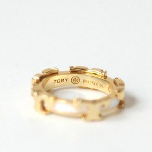 Tory Burch Gold/ Ivory Serif T Enameled Stackable