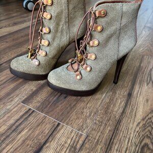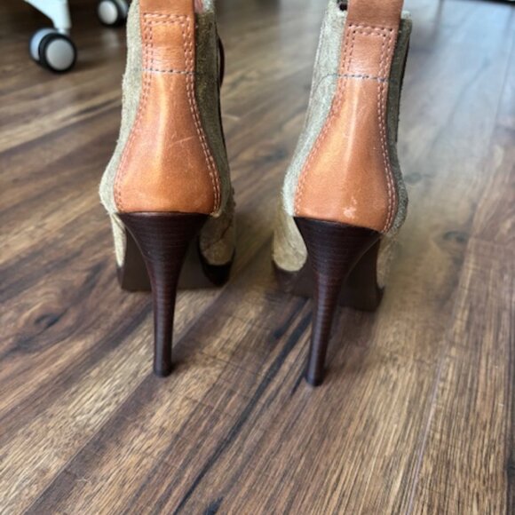 Perfect for fall! Tan/brown/gold suede stiletto ankle booties.