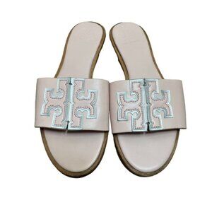 Tory Burch Ines Slides Sea Shell Pink Calf Leather Size 7.5 US