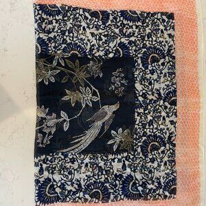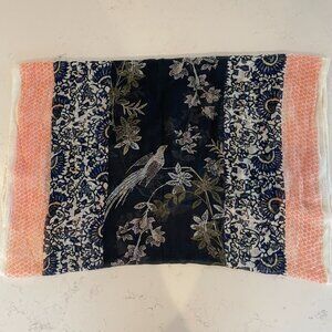 Tory Burch Inspired Lightweight Nature Print Viscose Blend Scarf in Navy Cream Peach Green - no fabric tag