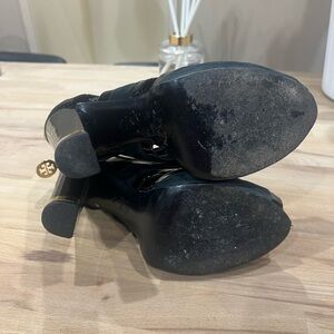 Excellent condition, very comfortable pair of Tory Burch Jeslann Patent and Suede Peep Toe Ankle Boot in size 7
