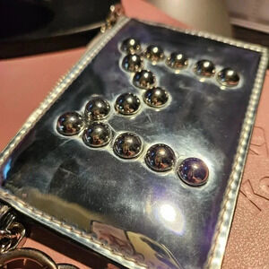Tory Burch | Key Pouch Silver Mirrory M Studded Card Holder