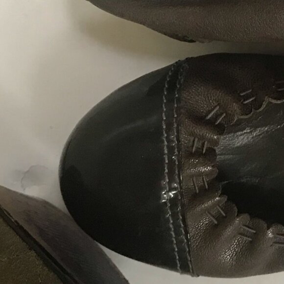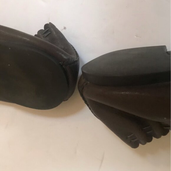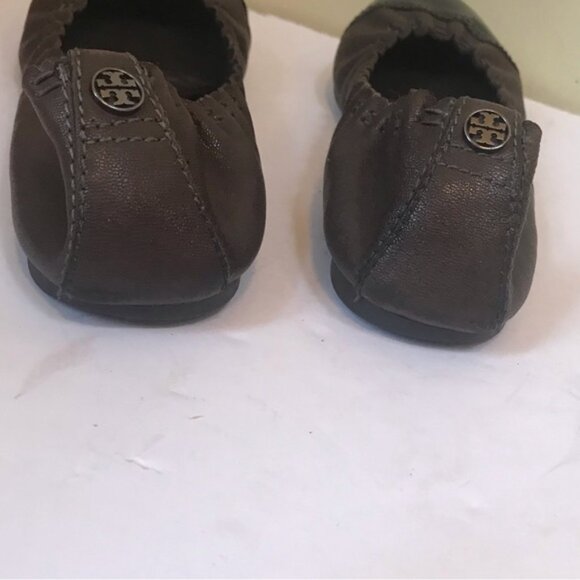 Tory Burch Leather Ballet Flats Shoes Cap Toe Logo Stretch Brown 7.5 Loafer Slip