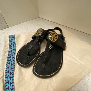 Black, Pebbled Leather, Gold Hardware, Thong, single buckle closure, US 7, Dust bag incl.