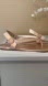 Ultimate Travel Sandal! Designed to be worn as a slide or a slingback, the convertible shoe features a logo-accented strap that can be positioned in the front or pivoted to the back. Double-T logos at pivoting slingback strap. Soft metallic Rose Gold leather upper and lining. Super-comfortable foam cushioning. Split-rubber sole for added flexibility. Folds to fit neatly into a tote or handbag signature hardware accents.