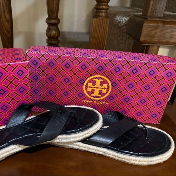Tory Burch NIB Quilted Espadrille Thong sz 7 Flip Flop