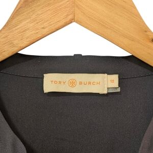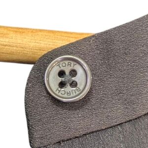 This elegant Tory Burch blouse features a sophisticated mandarin collar and a timeless navy hue, perfect for elevating both casual and formal looks. The classic cut flatters the silhouette while offering versatile styling options — pair it with trousers for the office or jeans for an effortlessly chic weekend look.