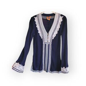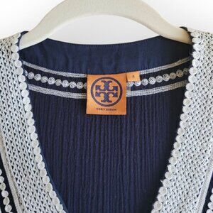 Tory Burch Navy White Tunic with Gold Accents Size 4