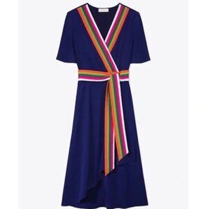 Tory Burch Peggy Wrap Dress in Navy Sea Soul Stripe with Multicolour Accents