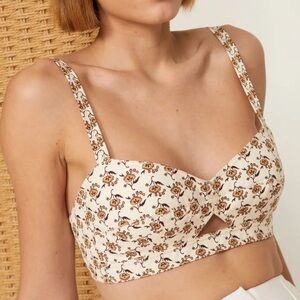 Perfect for summer styling, this Tory Burch printed bra top features a delicate floral pattern on soft tan cotton.
