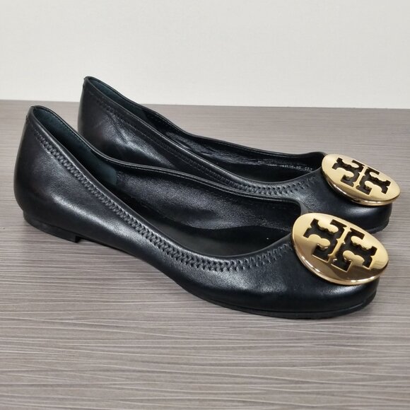 Tory Burch Reva Ballet Flat, Black Leather, Women’s Size 4 M