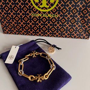 Tory Burch Roxanne Chain PavÉ Gold Bracelet