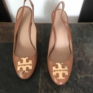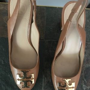 Immaculate used condition rarely worn Tory Burch Slingbacks. Beautiful classic tan color. Closed rounded toe. Size 5 true to size.