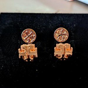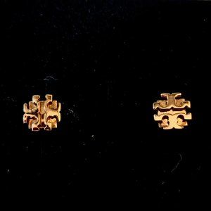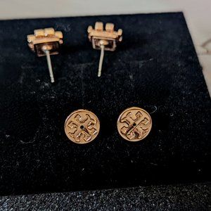 Lightly-worn, signature Tory Burch double-"T" logo, post backs, 3/8" square, rose gold.