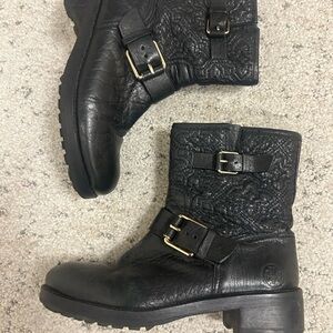 Tory Burch Sz 6 “Chrystie”Black Quilted Boots with Buckle Straps Great condition