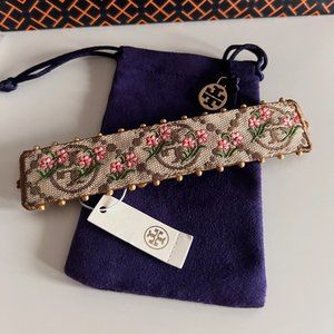 Tory Burch T Monogram Floral Rolled Brass / Hazelnut Bracelet