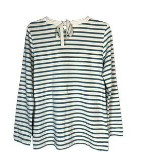 Tory Burch T-Shirt Casual Long Sleeve Blue White Striped Back Embellished Tie