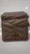 Chic quilted wallet featuring a gold emblem. Compact and stylish. Size 4.5”x4”x1”
