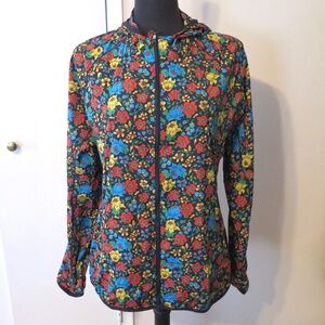 This listing is for a Tory Burch Tory Sport floral nylon packable full zip windbreaker in women's size Large.