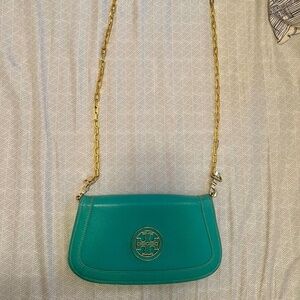 Tory Burch Turquoise Crossbody Chain Clutch Bag Purse