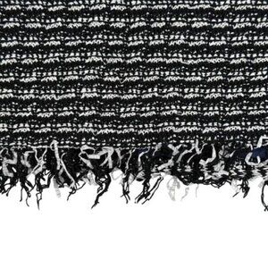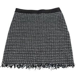 Tory Burch Tweed Raffia Fringe Skirt Leather Trim Size 8 Black/White