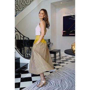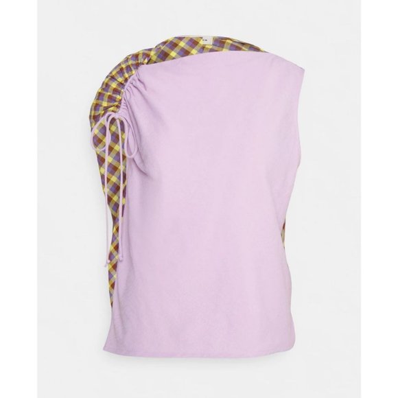 Tory Burch Veronica Plaid Ruched Top Mallow Pink Size 8