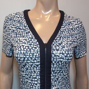 Tory Burch Vienna Dress Womens Size Small Blue Zippered Short Sleeve Fit & Flare