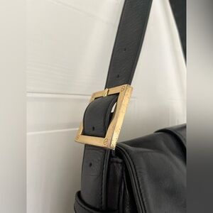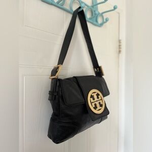 Tory Burch Vintage Black Leather Shoulder Bag with large logo