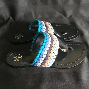 Tory Burch Women's Patos Sport Blue Silver Disk Thong Sandals Flip Flops Size 6