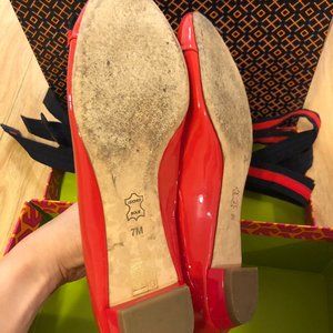 Tory Burch Women's red patent leather bow ballet flats shoes with lacing size7
