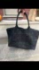 Black woven leather tote bag