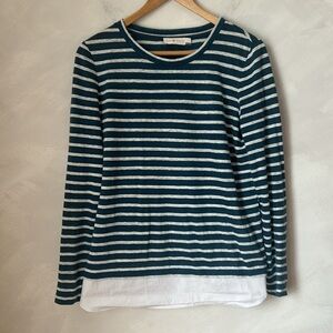 Tory Burch linen jersey pullover blue peninsula striped mixed fabric sz small