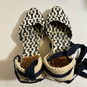 Tory Burch lobster lace up wedge sandal espadrilles in size 38