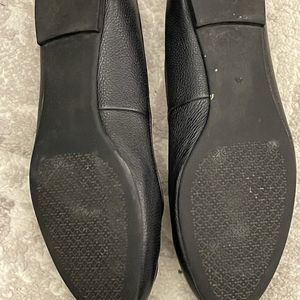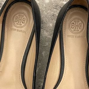 Authentic Tory Burch Leather Ballet Flats in Black pebbled leather