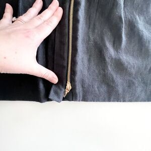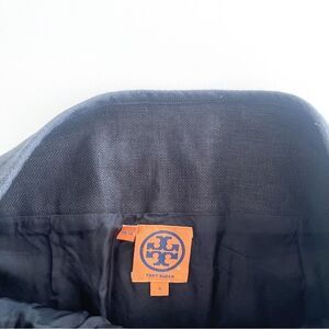 Tory Burch Schafer Heavyweight Linen Mini Skirt Black Women's 6 Lined Gold Buttons Side Pockets. Very good used condition. Please see photos for approximate measurements.