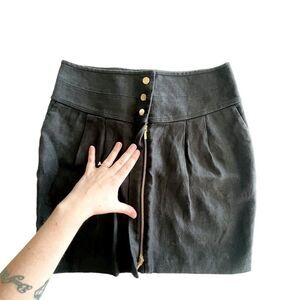 Tory Burch Schafer Linen Mini Skirt Black Women's 6 Lined Gold Buttons Pockets