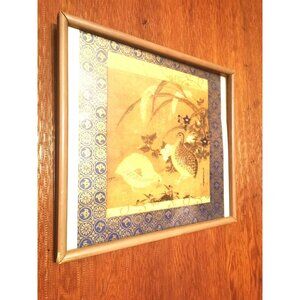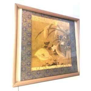 Tosa Mitsuoki Framed Woodblock Print Quail &Flowers Japan DAMAGED FRAME DISCOUNT