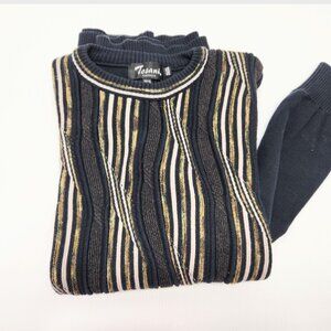Tosani Canada Men XXL Black Gold Coogi Style Cosby Crew Neck Cotton Knit Sweater