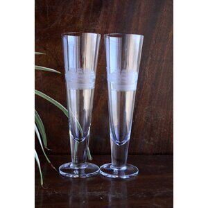 Vintage Toscany Hand Blown Set Of Two Pilsner Glasses in good vintage condition with small signs of age and use. Perfect to keep and use, or gift to a friend or loved one. Hand blown glass made in Romania ca 1980s. Each glass takes ca 12 fluid oz / 400ml of liquid.