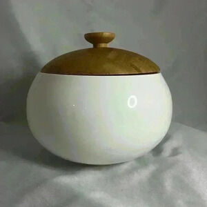 Totally Bamboo medium white ceramic canister, measures 7” wide x 6” high, great kitchenware.