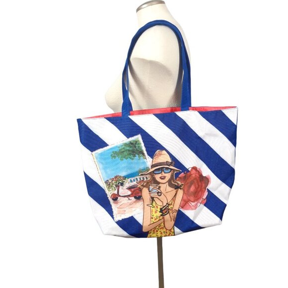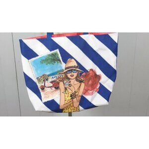 Tote Bag Shopping Beach Travel Cruise Striped Blue White Vespa Girl Vacation